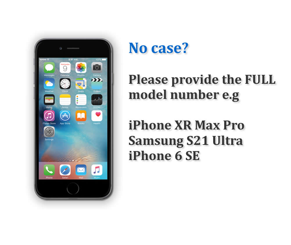 No case? The full model of your phone. Be sure to include any extra letters or numbers.