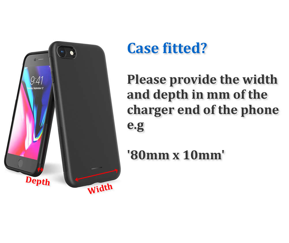 - Phone in case: Width 79mm Depth 11.5mm – Straight on view